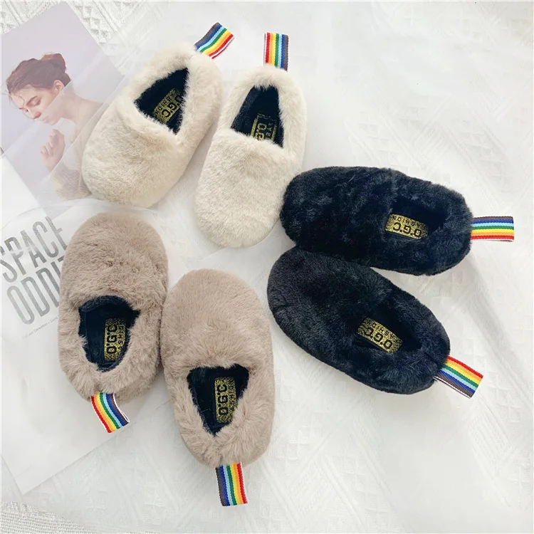 2019 Winter New Girl Bean Shoes Plus Velvet Kids Baby Home Warm Fur Shoes 1-6 Years Old 3 Children